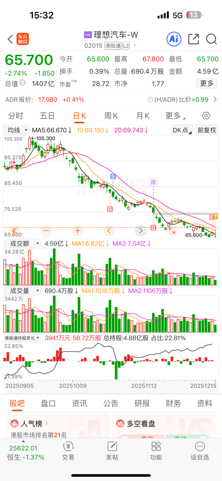 $理想汽车-W(HK|02015)$ 搞不赢你呀 只能这样慢慢补了 等我大a资金撤出来慢慢补你了