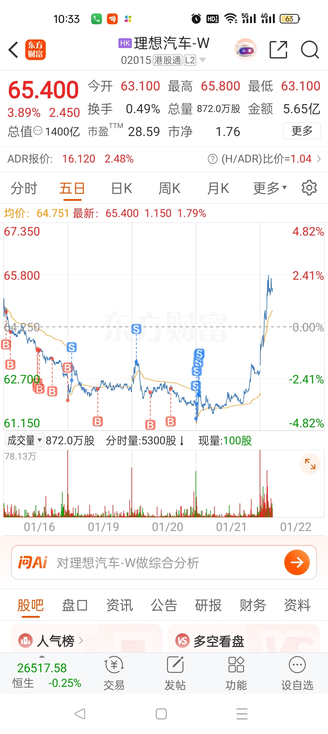 $理想汽车-W(HK|02015)$ 周二晚上美股大跌,吓得我昨天20000股清仓,又来这一手