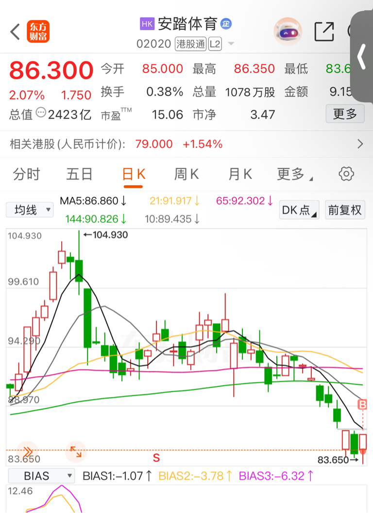 $安踏体育(HK|02020)$ 刚好抄到底了美滋滋,静等一波促消费政策……