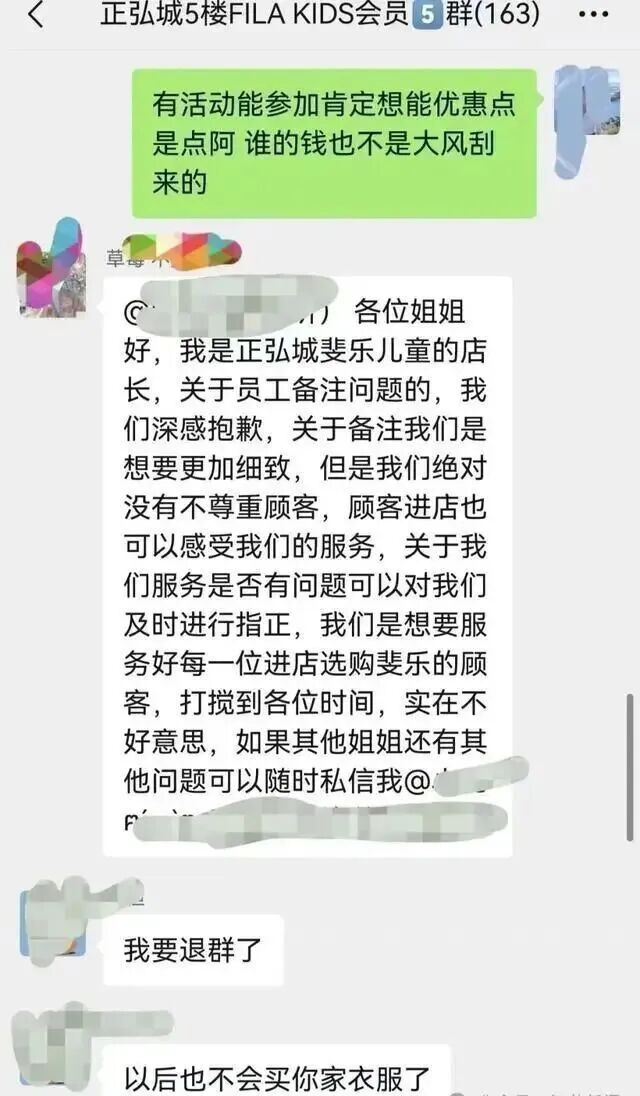 FILA消费者体验官方服务号在帖子下面回复,称已第一时间与门店负责人了解情况,并对存在失当行为的员工进行了严肃的批评,类似情况是绝对不被允许的。