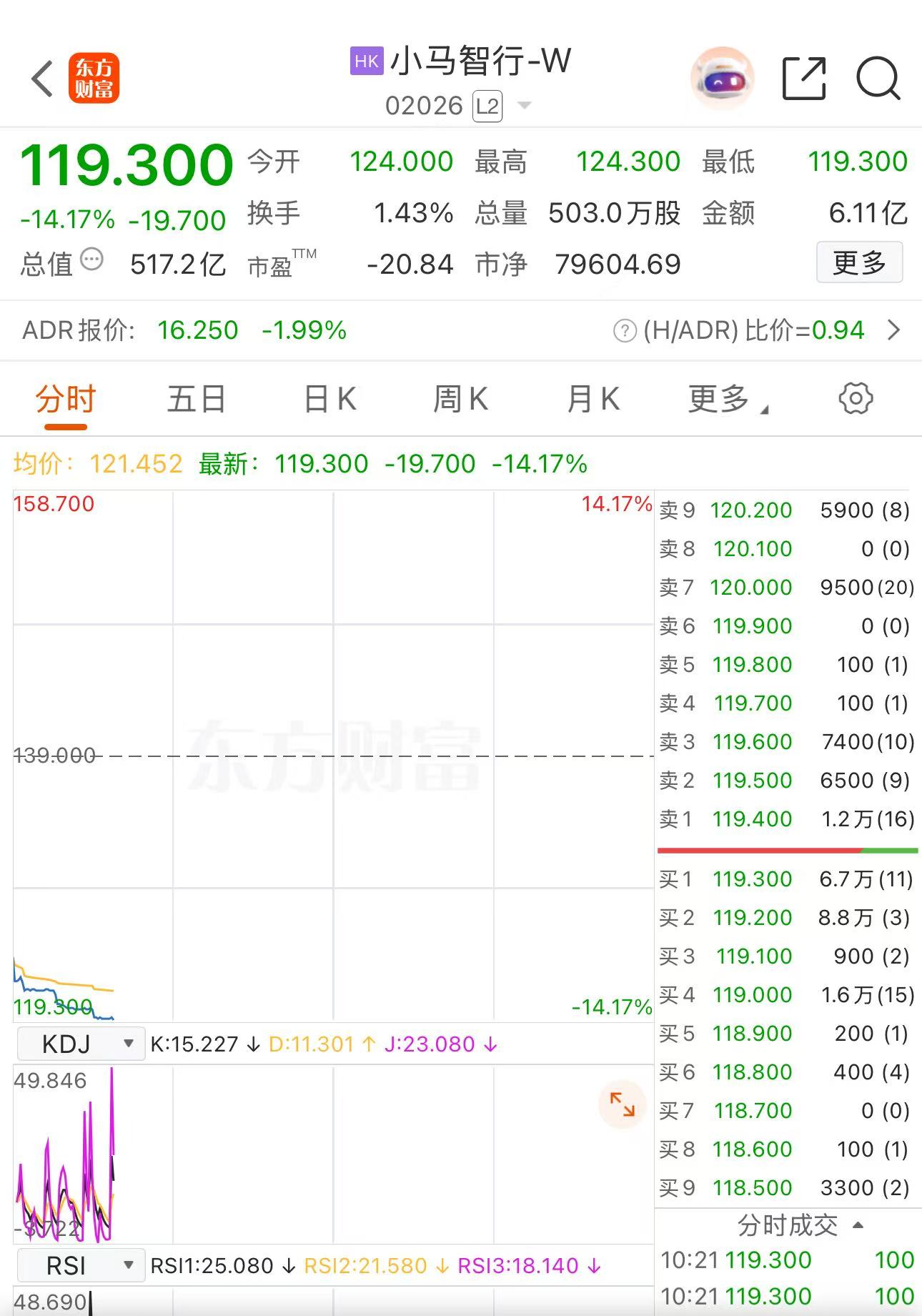 港股异动 | 小马智行-W登陆港股首日盘中跌超14%
