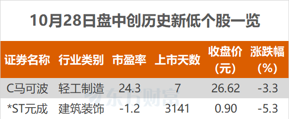 东方财富Choice数据显示,今日有2只个股盘中股价创历史新低。