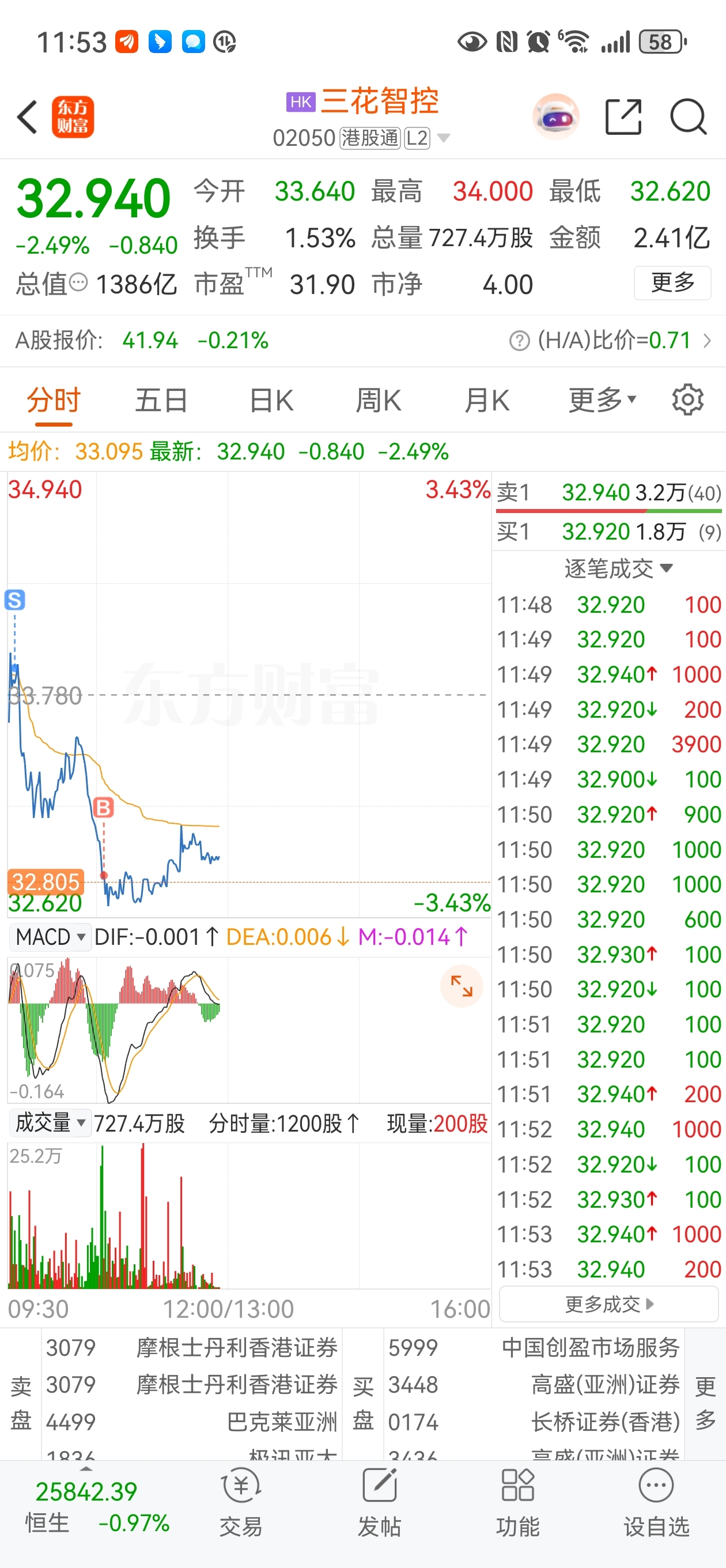 $三花智控(HK|02050)$ 涨跌 比中芯爽,加油