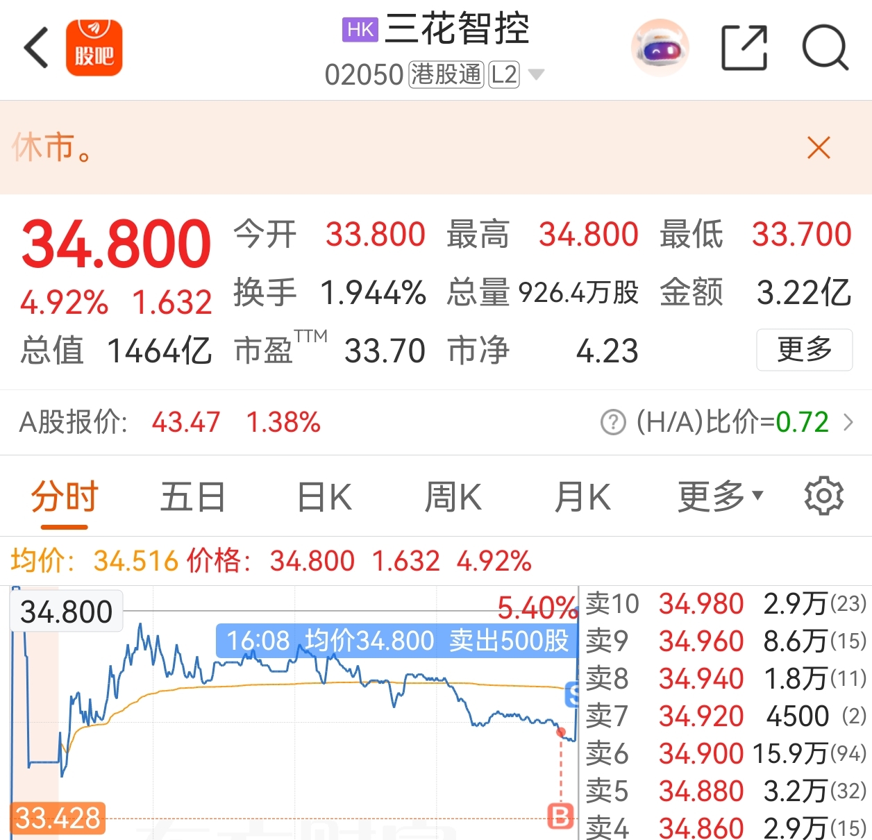 $三花智控(HK|02050)$ 闲的无聊,尾盘练练手