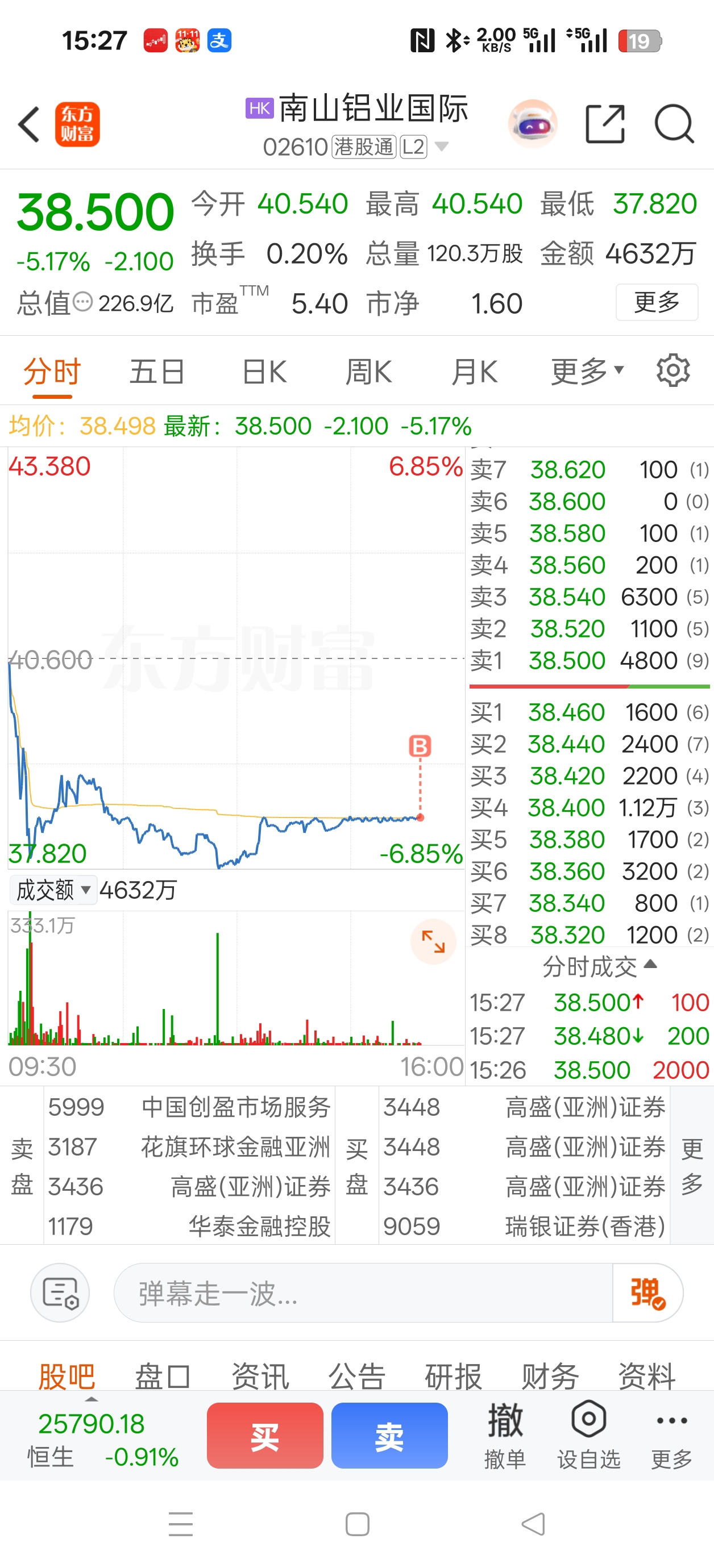 选来选去,近期金属避险大多数贵金属已经在山顶,南山铝业正经铝生产企业,对比中铝国际的暴涨,还在低位,pe对比50和5,简直是捡钱,近期妖股,打野性价比已经不高,南山铝业国际一口气建仓完成,静待花开,翻倍pe到10一点也不高估