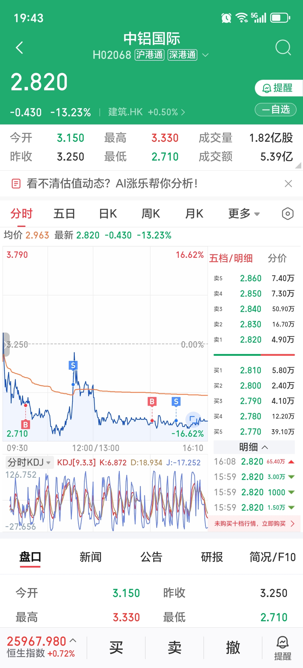 $中铝国际(HK|02068)$ 太没格局了今天一把梭哈没多少利润,差点反亏