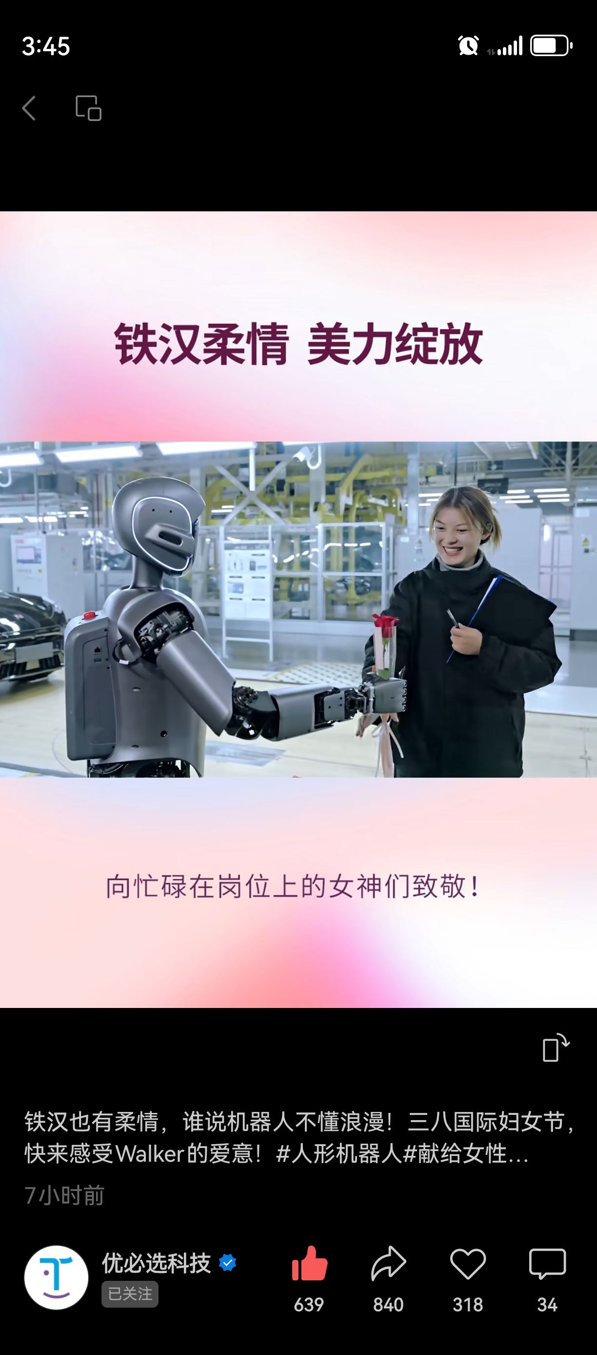 优必选人形机器人会撩妹了~