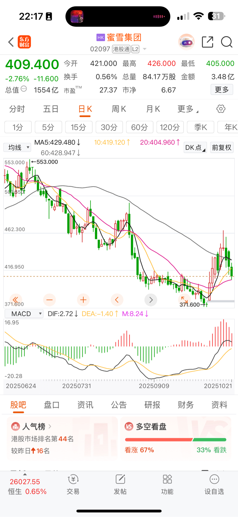 $蜜雪集团(HK|02097)$ 怎么看都像下跌中继
