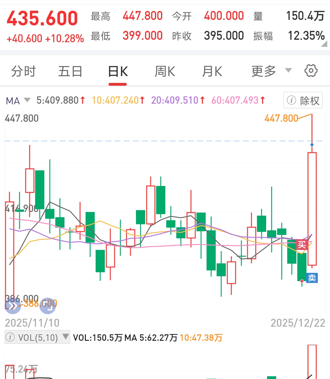 200股,395进的,今天是438走的,盈利5千出,手续费收了200多,有机会再