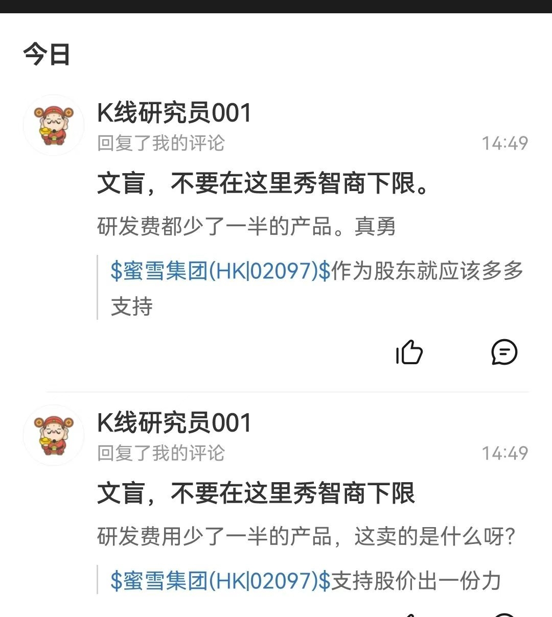 温馨提示: 1.根据《证券法》规定,禁止编造、传播虚假信息或者误导性信息,扰乱证券市场;2.用户在本社区发表的所有资料、言论等仅代表个人观点,与本网站立场无关,不对您构成任何投资建议。用户应基于自己的独立判断,自行决定证券投资并承担相应风险。《东方财富社区管理规定》
