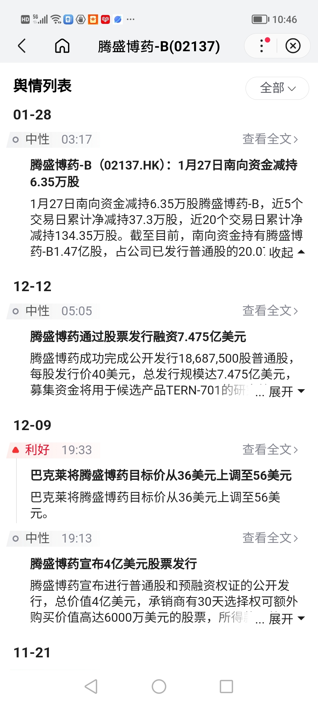$腾盛博药-B(HK|02137)$ 舆情信息上,12月9日与12月12日的利好信息,闻所未闻,公告在哪里?!真这样的利好,股价早上天了!