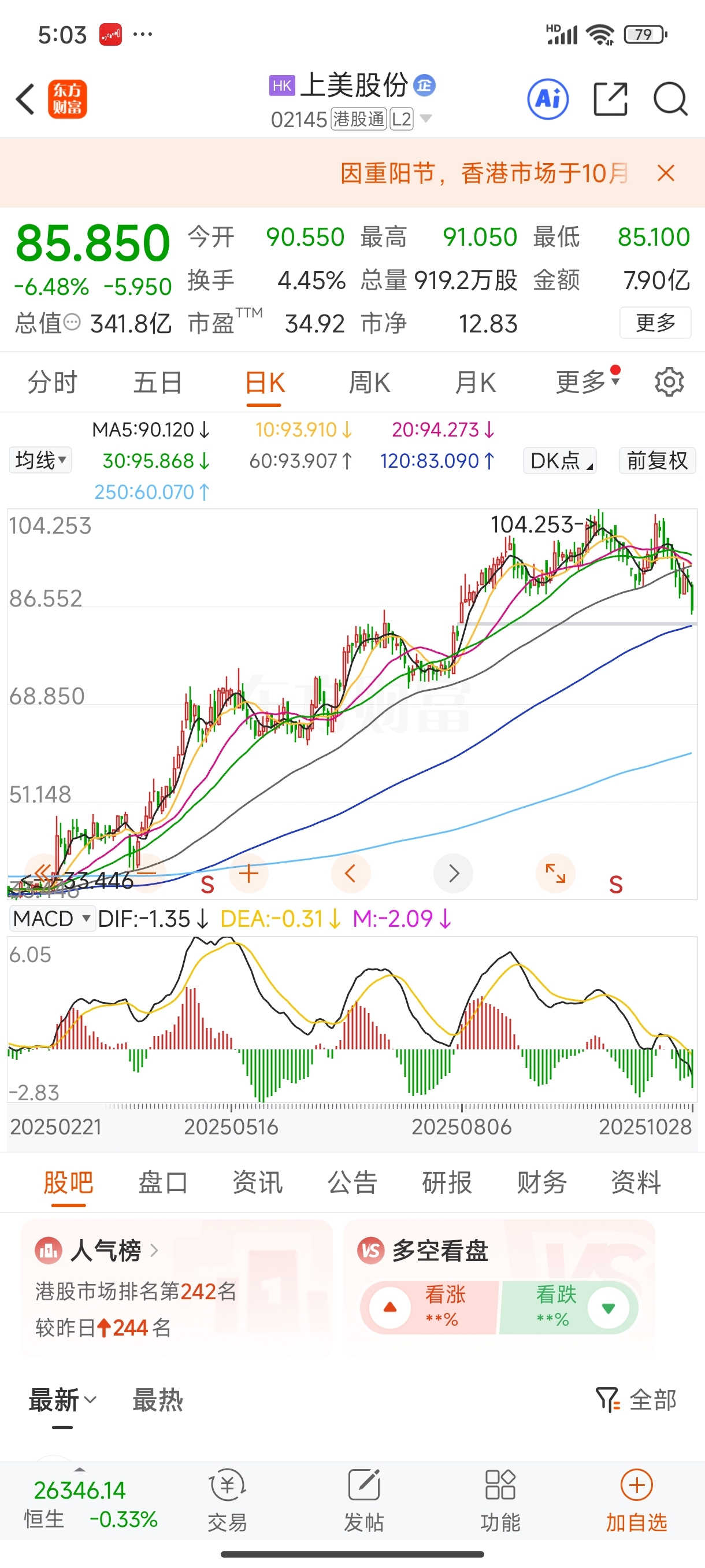 $上美股份(HK|02145)$ 趋势没有变坏,今天回到支撑位,明天开始反攻?