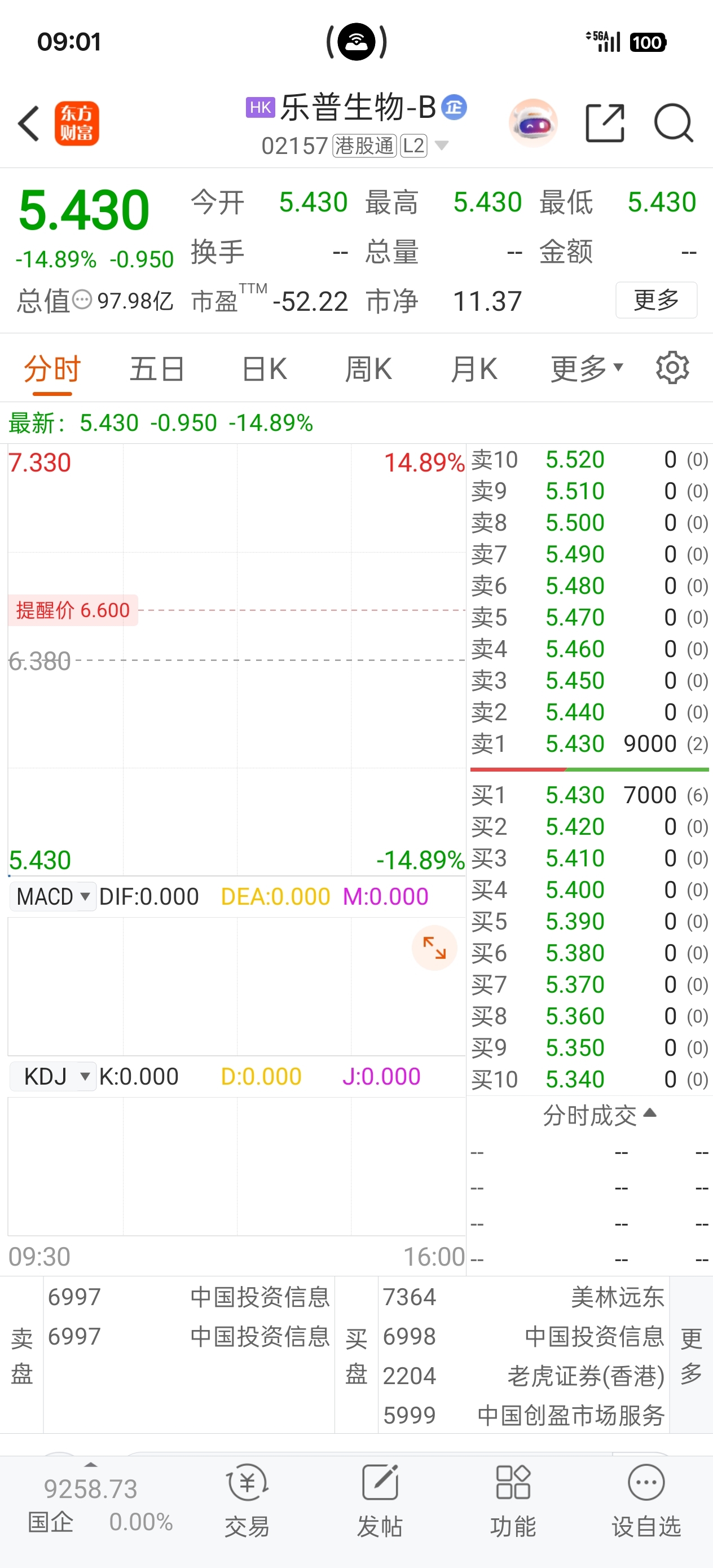 $乐普生物-B(HK|02157)$ 有本事继续砸到九点三十!