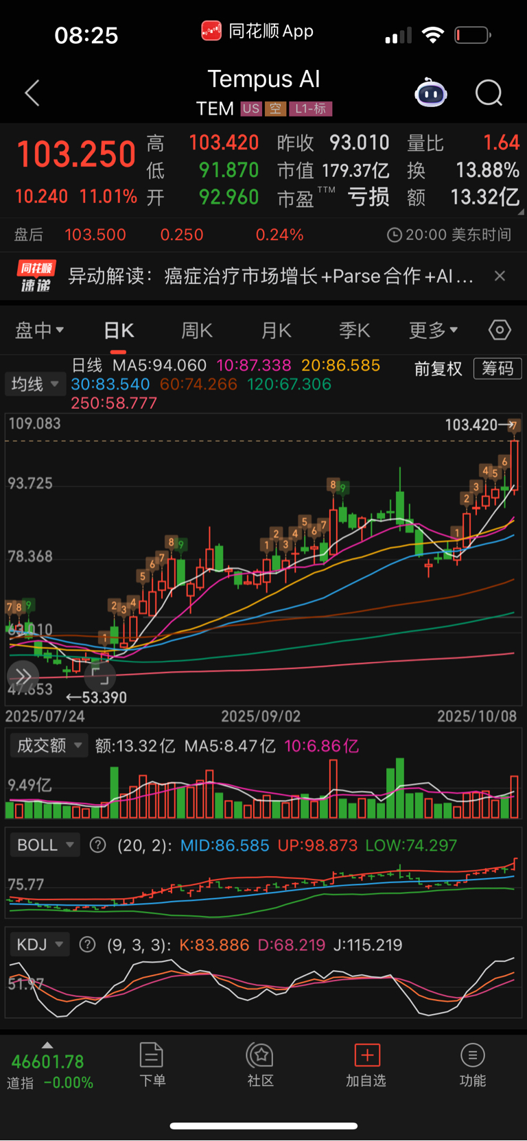 美股ai医疗TEM暴涨创历史新高