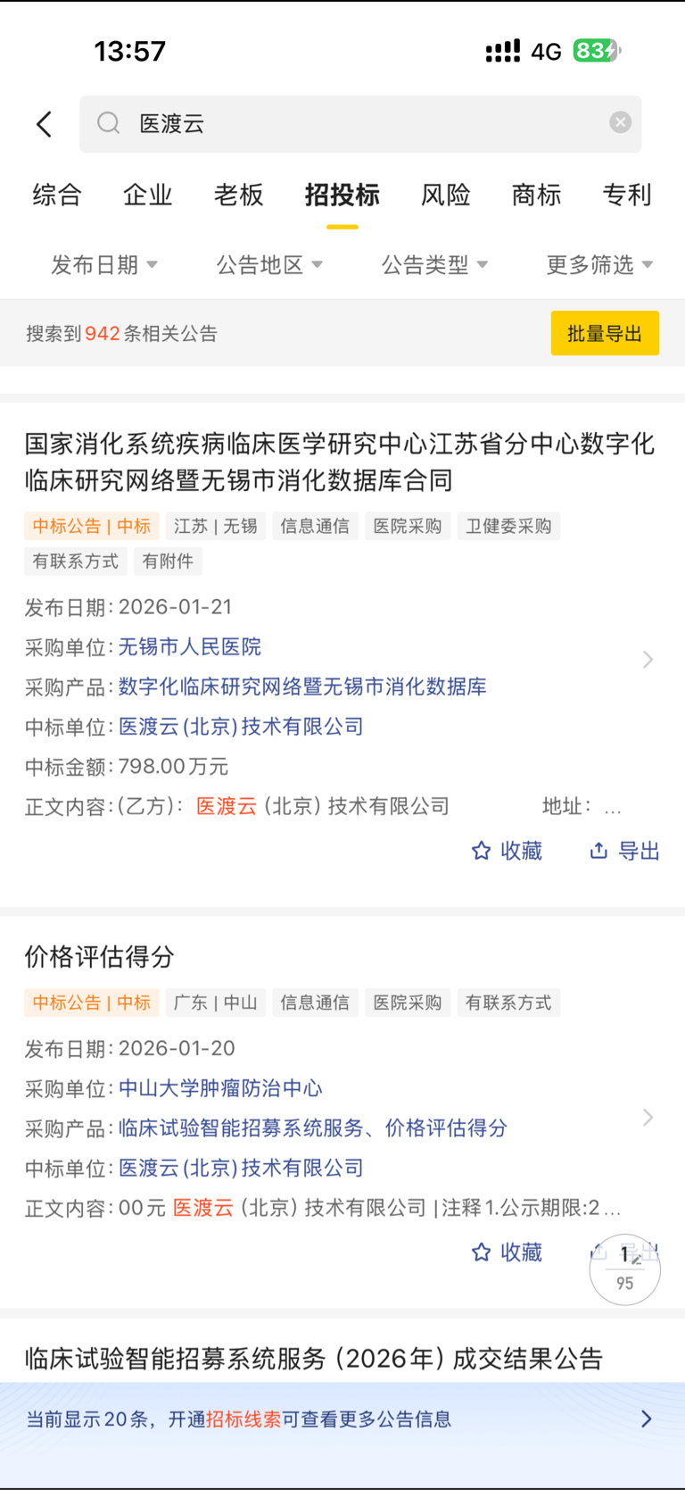 $医渡科技(HK|02158)$ 医渡科技还是在中标的!有项目合同,公司在盈利。