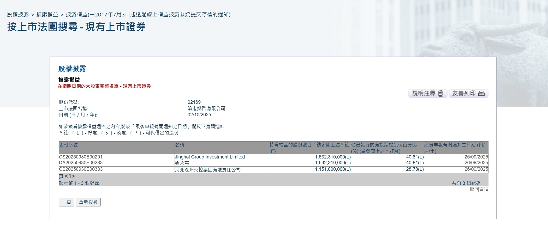 $沧港铁路(HK|02169)$ 根据港交所最新股权披露数据,国资交控集团,9.24号增持3.01多亿股,9.25号(原先披露增持1.24亿股,现已修正为增持4.26亿多股)9.26号又增持了4.22亿多股,也就是三天时间增持了28.78%,三天时间增持11.51亿股