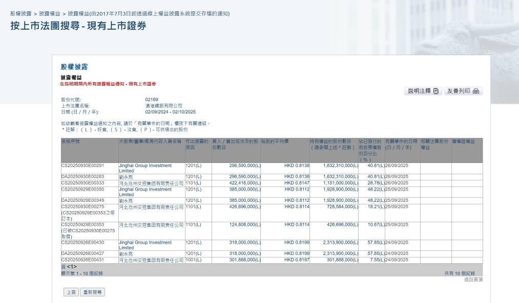 $沧港铁路(HK|02169)$   根据港交所最新股权披露数据,国资交控集团,9.24号增持3.01多亿股,9.25号(原先披露增持1.24亿股,现已修正为增持4.26亿多股)9.26号又增持了4.22亿多股,也就是三天时间增持了28.78%,三天时间增持11.51亿股