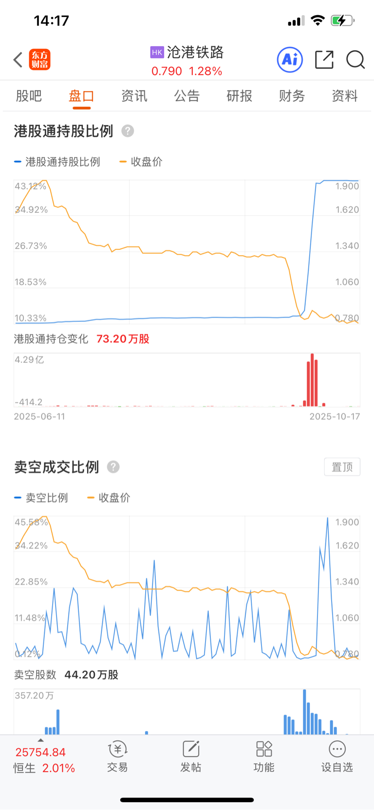$沧港铁路(HK|02169)$ 港股通买了43%、能涨才怪了,一般港股通仓位高的没有一个好的