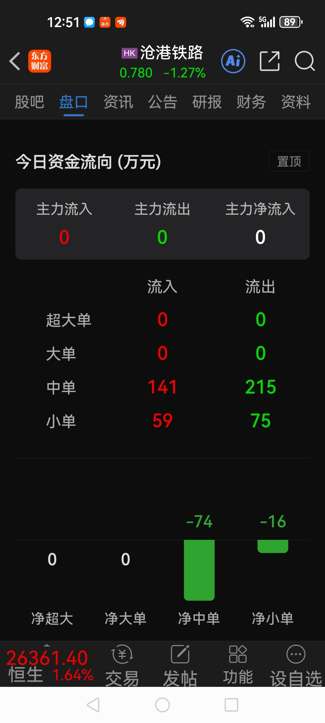 $沧港铁路(HK|02169)$ 沧港铁路继续洗盘,估计要跌到0.73元左右企稳。想上车的话就要耐心等待吧,否则必被套。看看资金流入情况,下跌很正常。