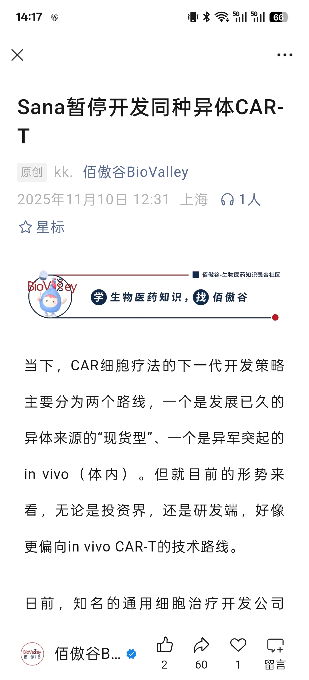 通用型car-t太难,做体内car-t的公司得有上百家了