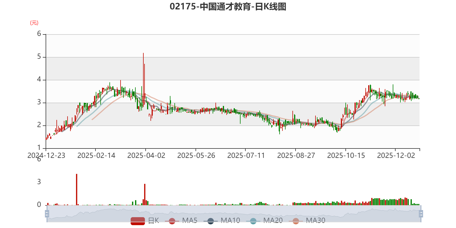 中证智能财讯中国通才教育(02175)12月23日披露2024-2025年年度报告。截至8月31日的12个月内,公司实现营业收入3.3亿元,同比下降0.41%;归母净利润7633.3万元,同比下降29.59%;经营活动产生的现金流量净额为1.15亿元,同比下降41.99%;据报告显示,中国通才教育基本每股收益为0.16元,平均净资产收益率为4.12%。
