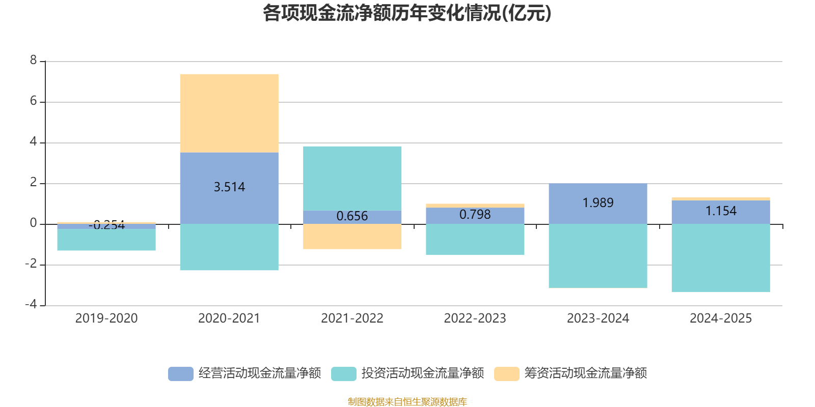 报告期内,公司经营活动现金流净额为1.15亿元,同比下降41.99%;筹资活动现金流净额1449.3万元,同比增加1572.6万元;投资活动现金流净额-3.35亿元,上年同期为-3.15亿元。