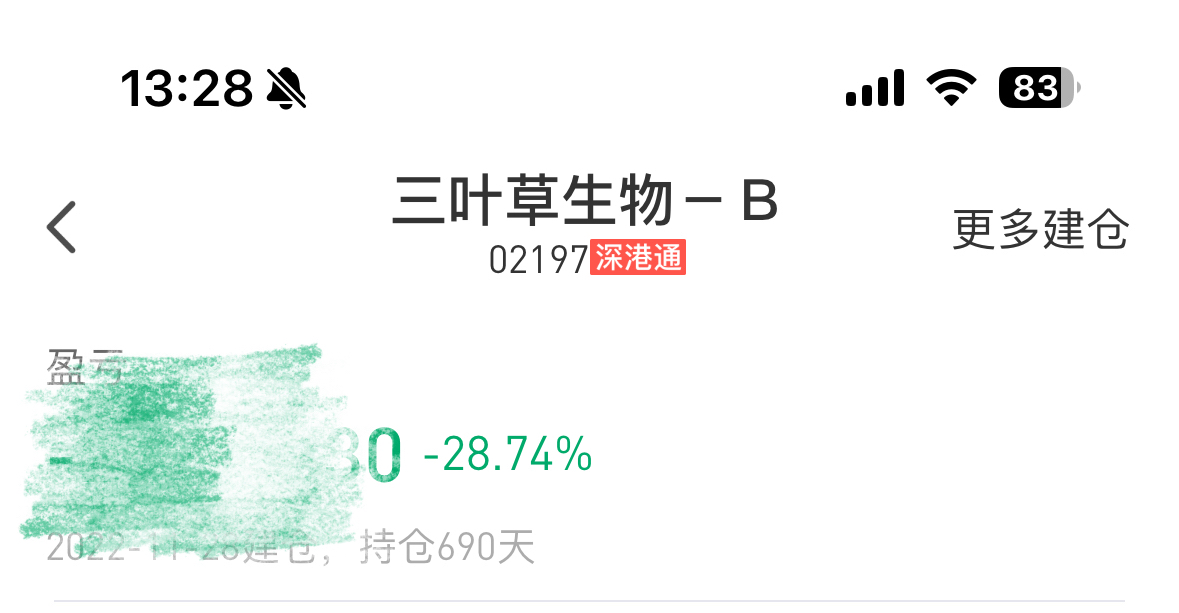 $三叶草生物-B(HK|02197)$ 出清了、虽然是亏的、但是再不走、就连裤衩都没有了