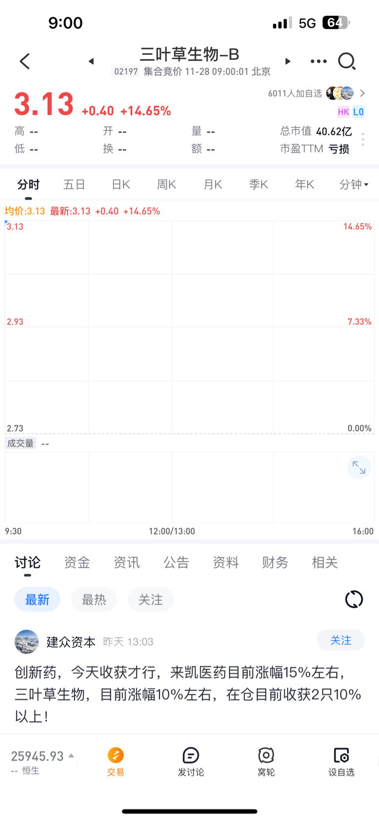 $三叶草生物-B(HK|02197)$ 今天就要破前高了吗?