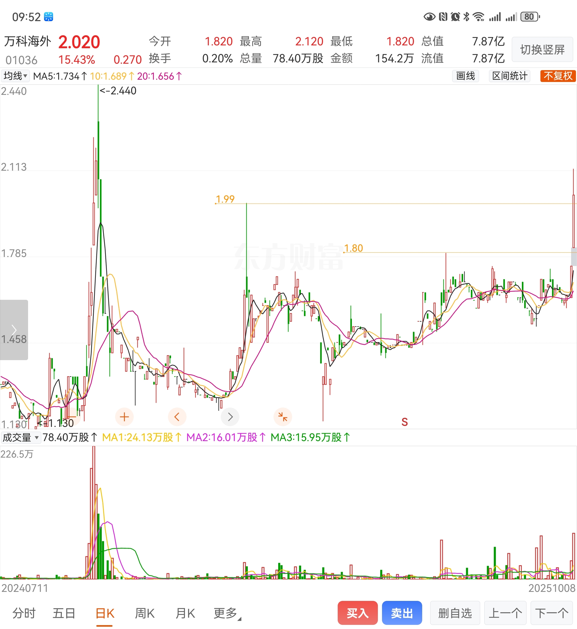 $万科企业(HK|02202)$ 万科海外已经启动放量突破前高了