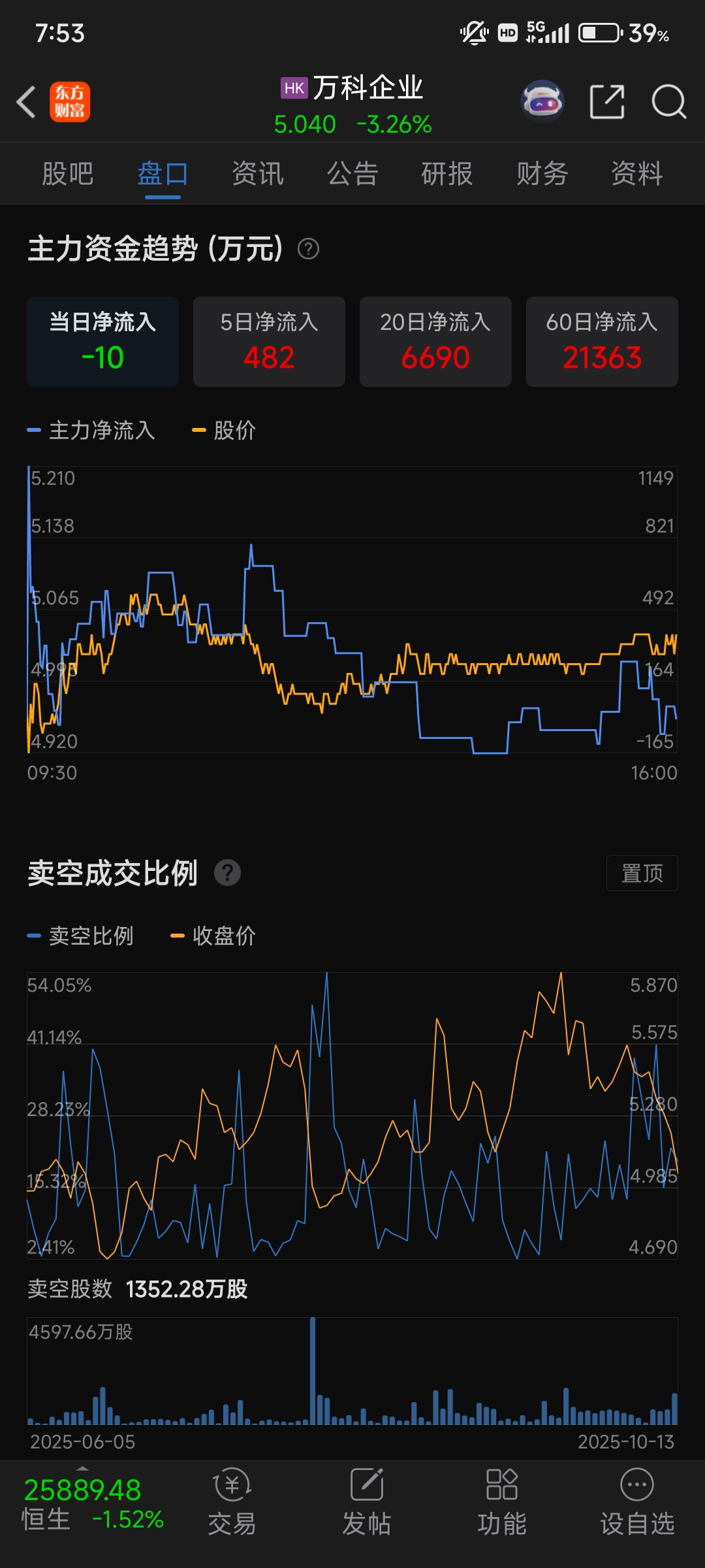 无论是短线还是长线主力资金正源源不断净流入万科H股!