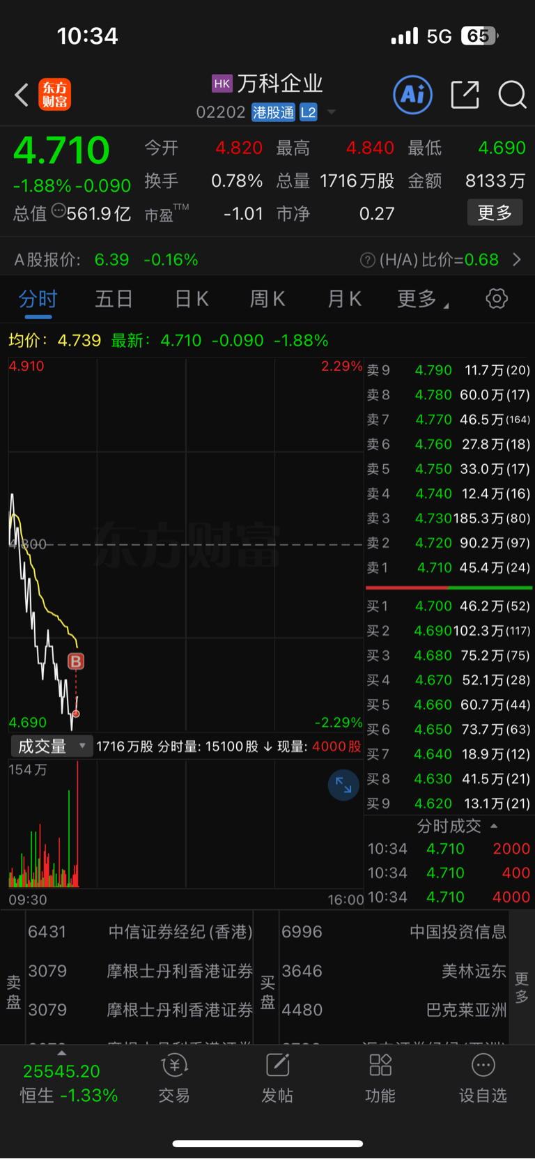 $万科企业(HK|02202)$ 万科第八天下跌。