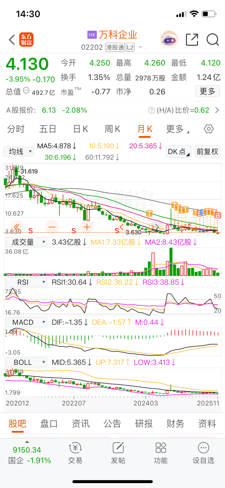 $万科企业(HK|02202)$ 半年多白玩。还不如离场走人