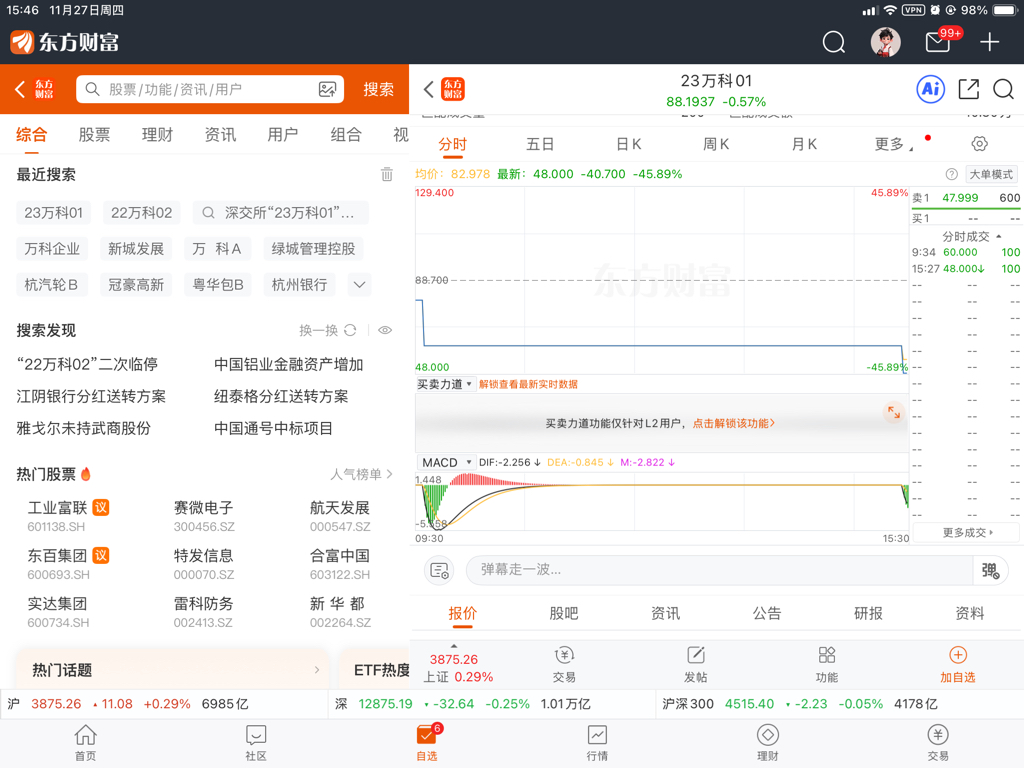 $万科企业(HK|02202)$ 大跌45.89%,买盘1股也没人挂
