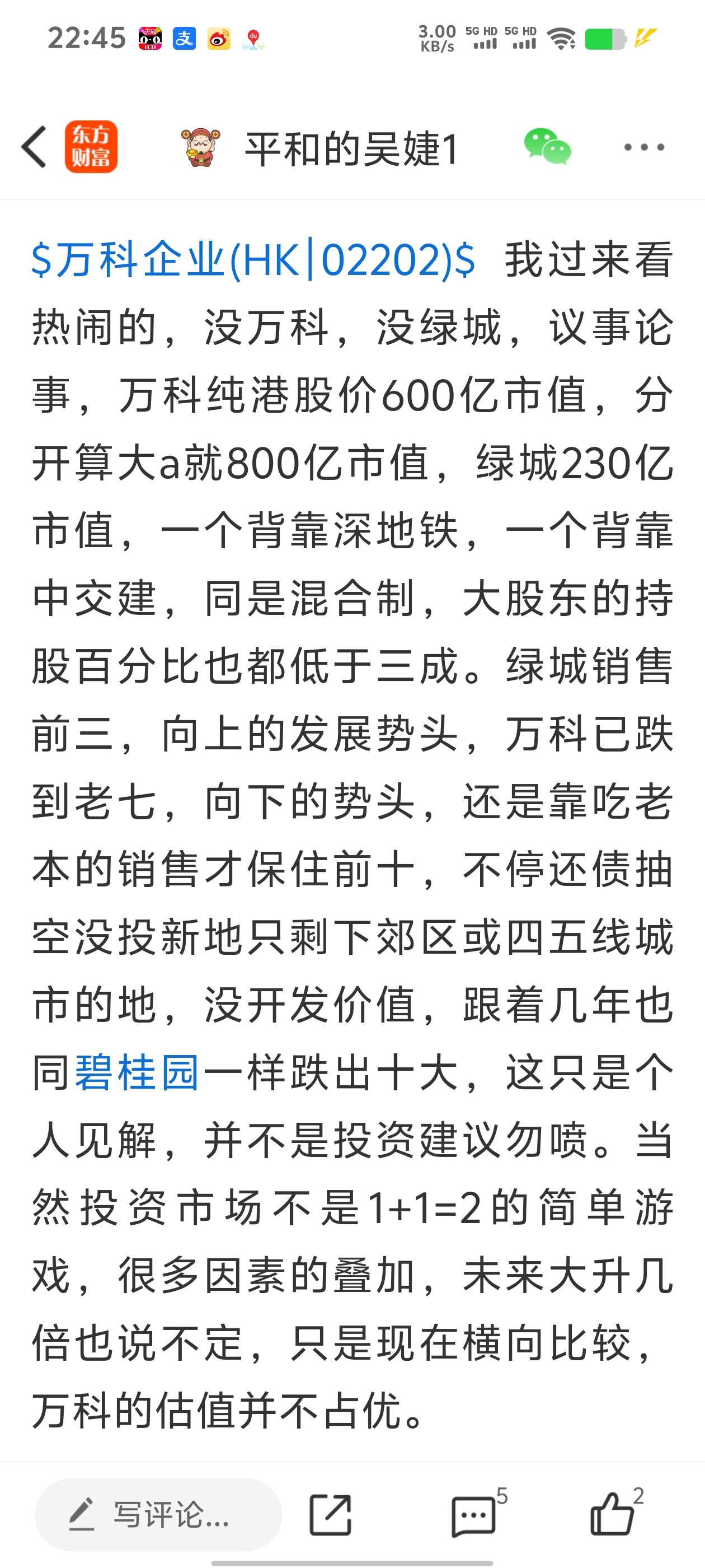 当时万科5.1港元,只想给大家提个醒还让人骂。