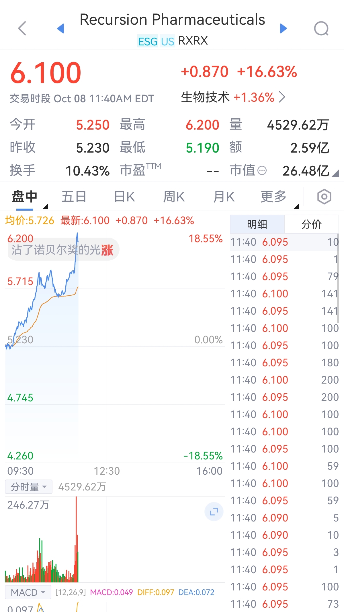 $晶泰控股(HK|02228)$ RXRX美国AI药企大涨,有什么消息刺激