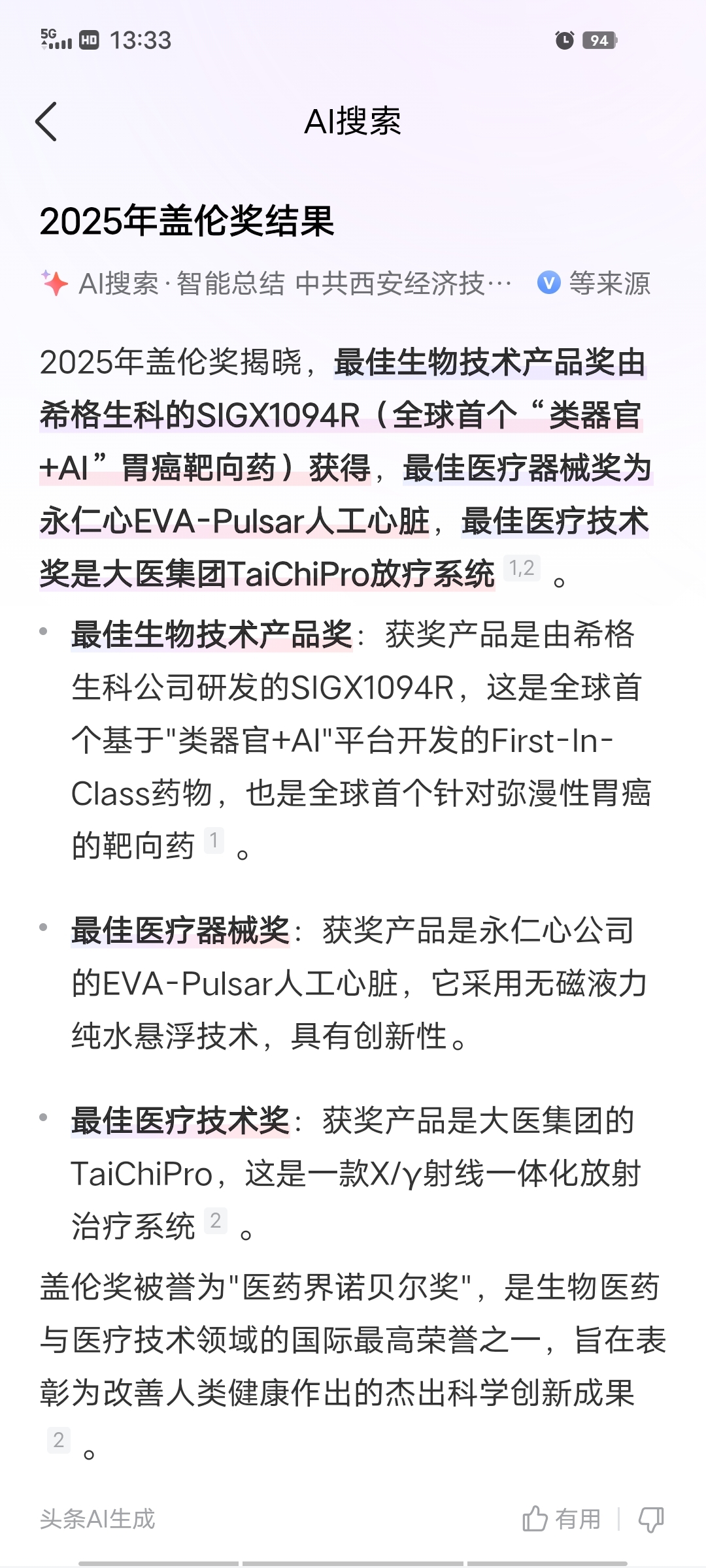 $晶泰控股(HK|02228)$  晶泰获得美国盖伦奖——最佳生物技术奖,牛