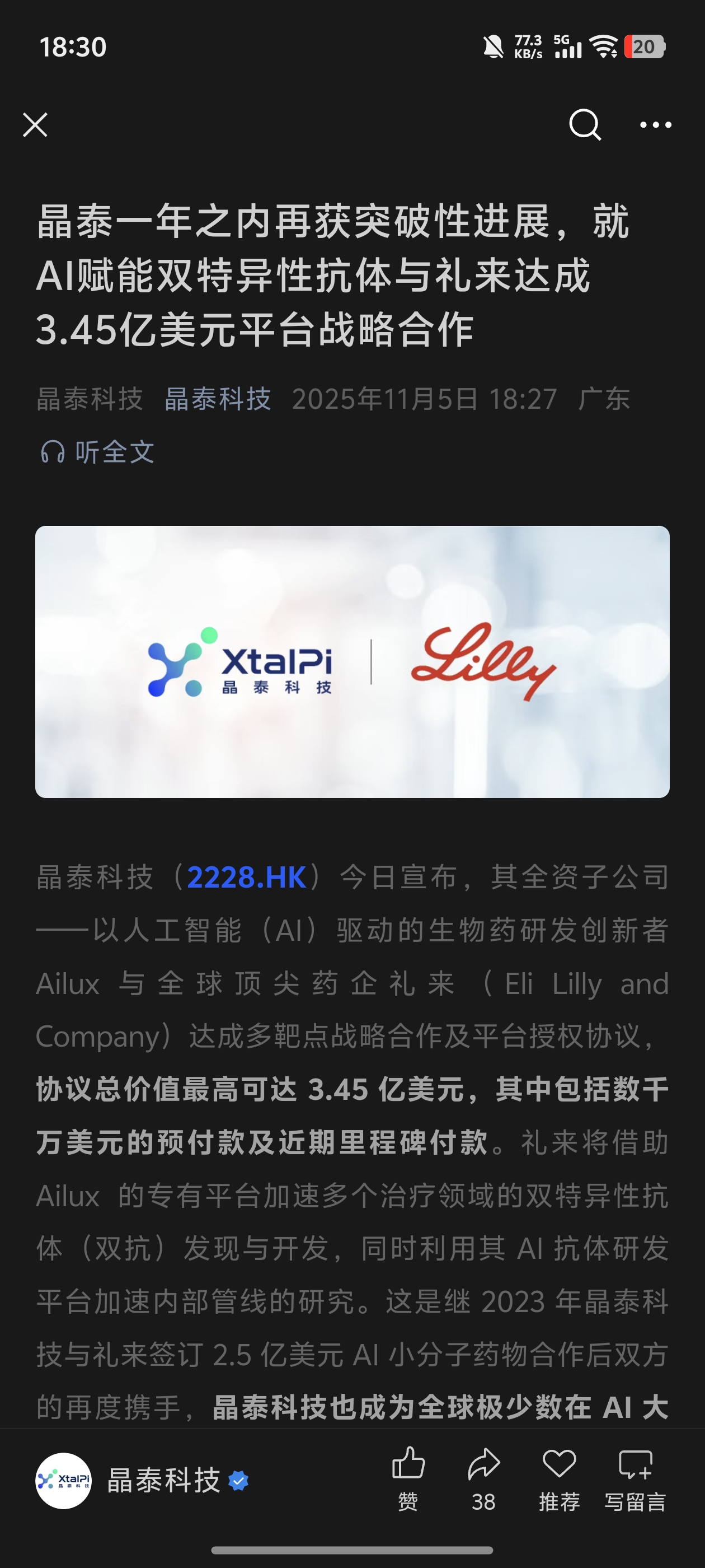 $晶泰控股(HK|02228)$ 坚定持有,一直以来毫无波澜。