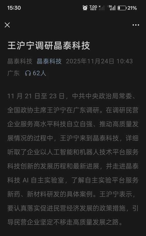 王沪宁调研晶泰科技