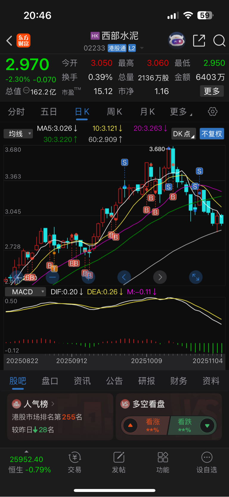 $西部水泥(HK|02233)$ 心中确实忐忑,获利回吐非常厉害,西水如此,阿里也是如此,有点扛不动的感觉