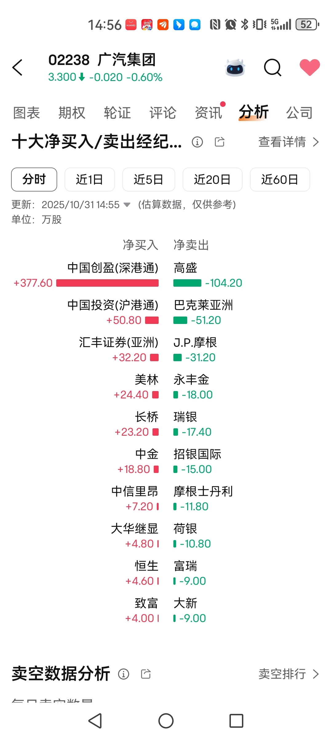 今天高盛主做空,存量只有二十多万卖了一百多万