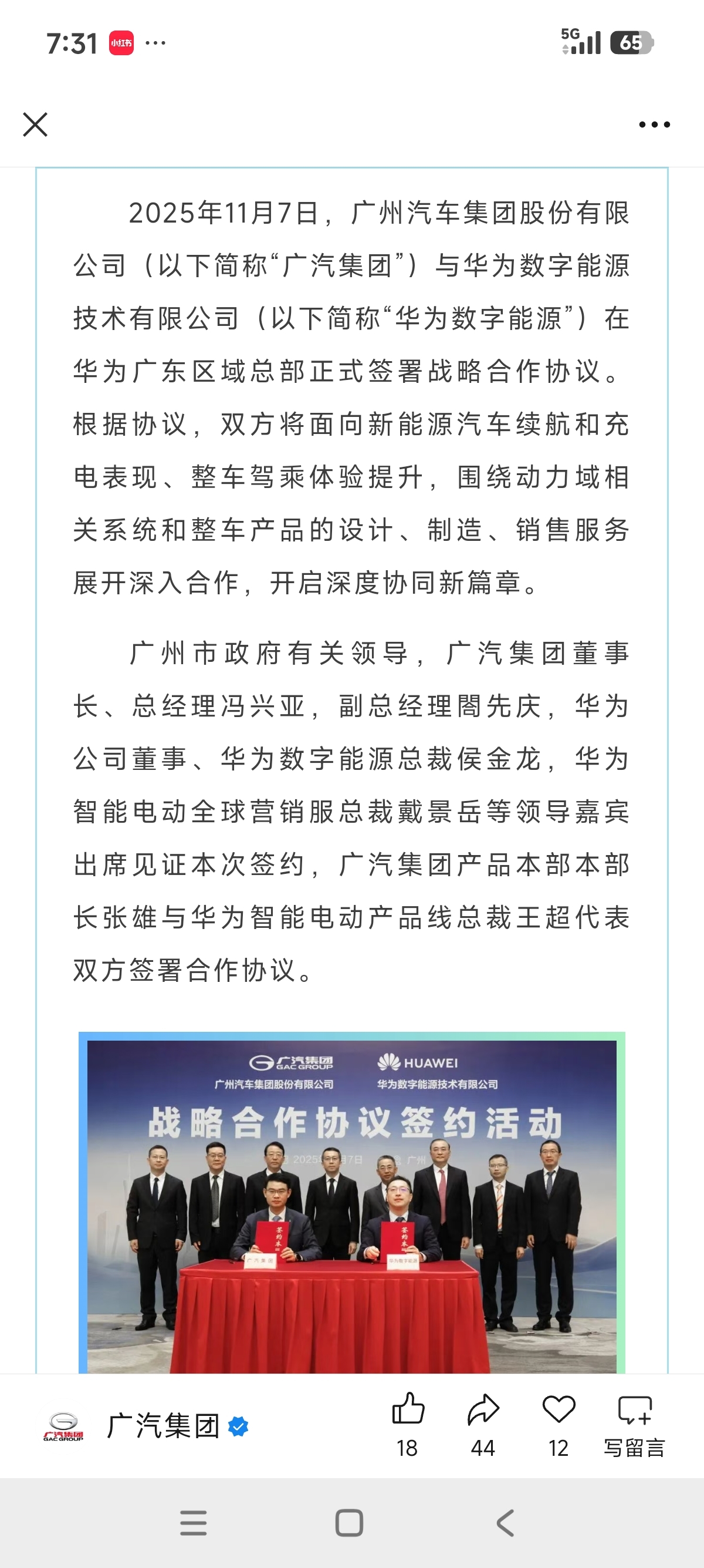 这波合作太顶了!广汽与华为数字能源签署战略合作协议。有没有课代表解读一下