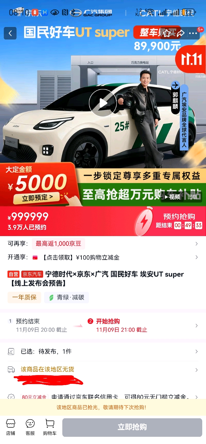犹豫了一下,,,没抢到,,,没货了换了三个地址,广州,佛山肇庆,,,,没货,没货