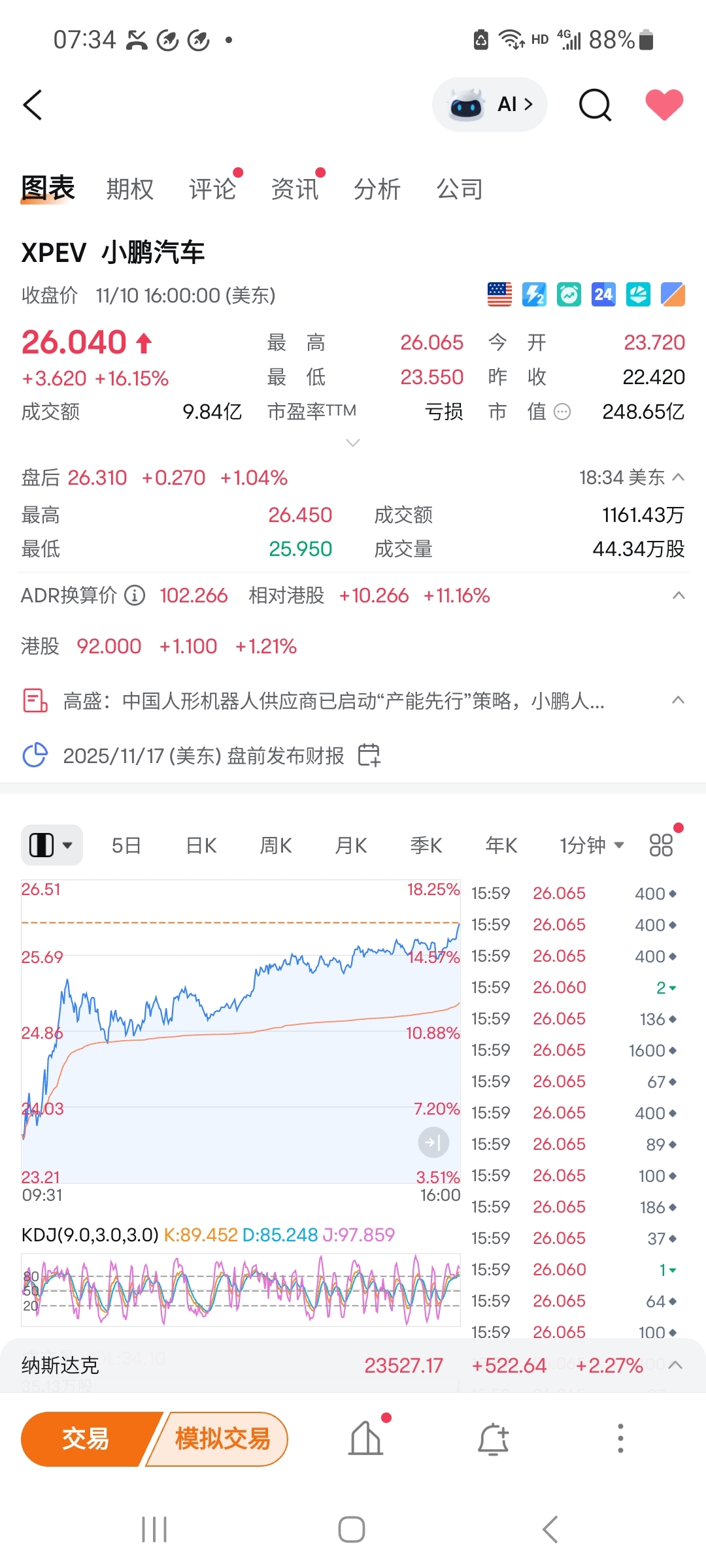 $广汽集团(HK|02238)$ 昨晚小鹏美股大涨16个点,市值达到1900多亿港币,是广汽港股的6倍。 小鹏的人形机器人,飞行汽车,自动驾驶得到了资本市场的高度认可和肯定,被称为最像特斯拉的中国车企。广汽的布局也想对标特斯拉,可惜技术能力不足啊