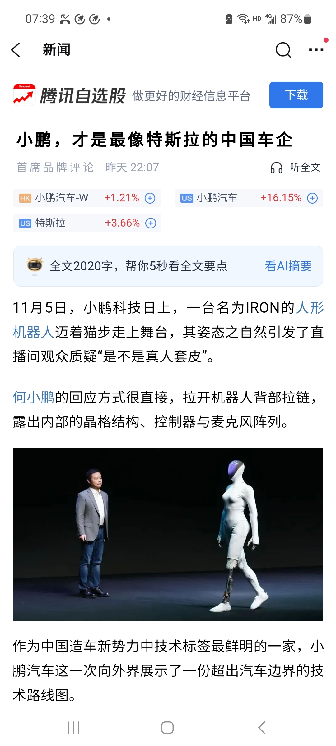 昨晚小鹏美股大涨16个点,市值达到1900多亿港币,是广汽港股的6倍。小鹏的人形
