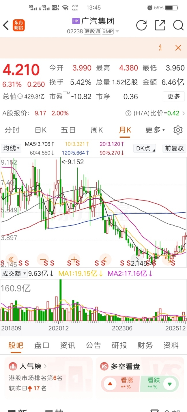 @妙想看月线图,广汽股价阻力位在9.15,还有很多上升空间