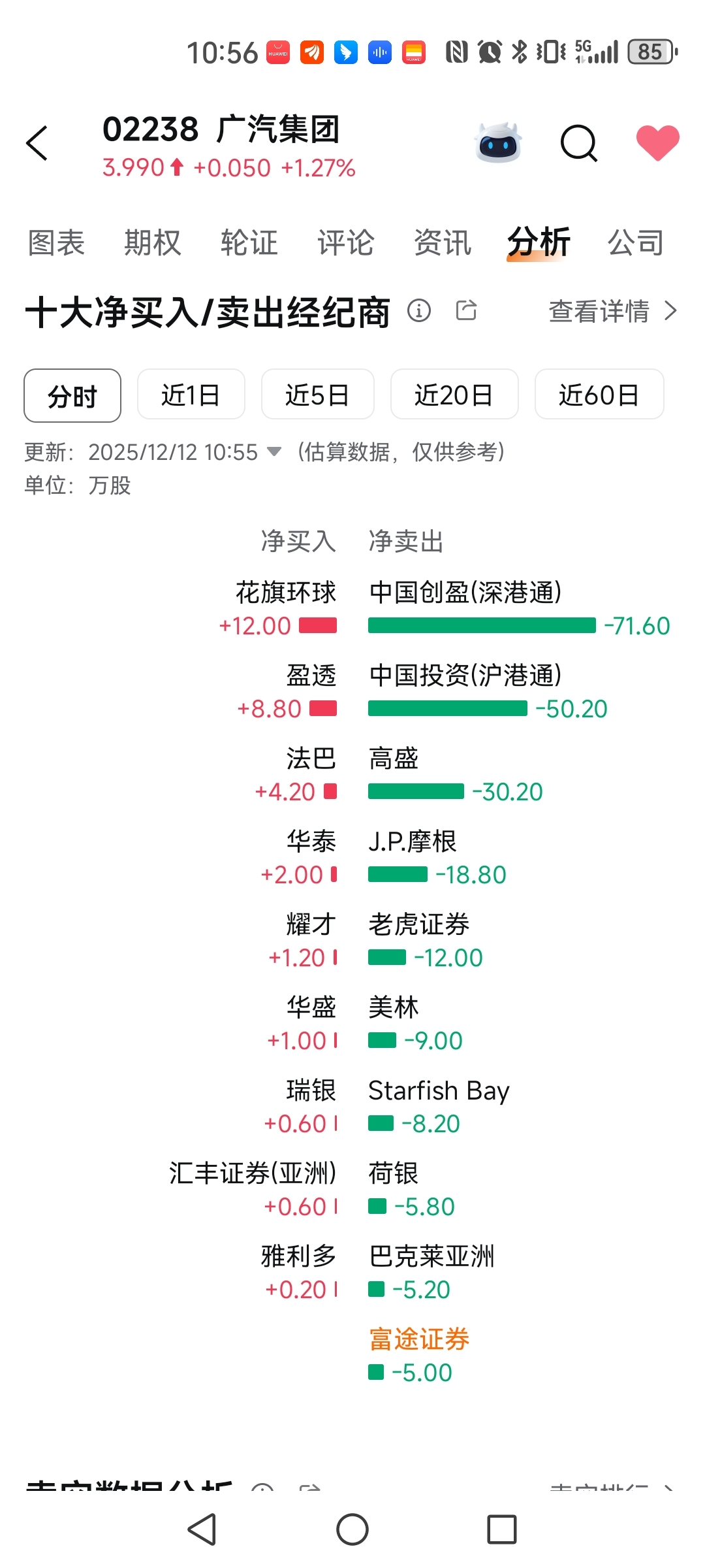 $广汽集团(HK|02238)$ 空头老实了,这创盈投资信息就开始作妖了,你们都不想赚钱呀,我丢…