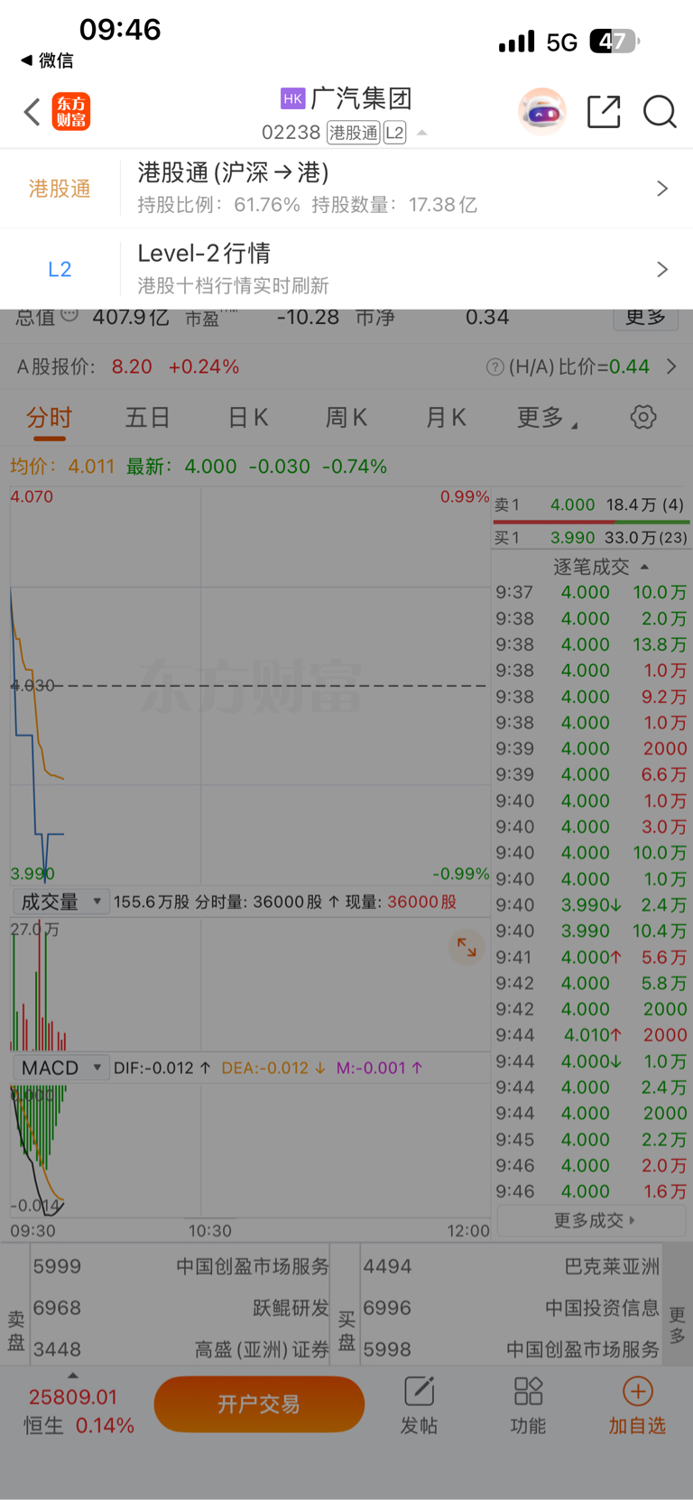 $广汽集团(HK|02238)$ 内资买了港股的61%好玩。。。。外资估计惨。