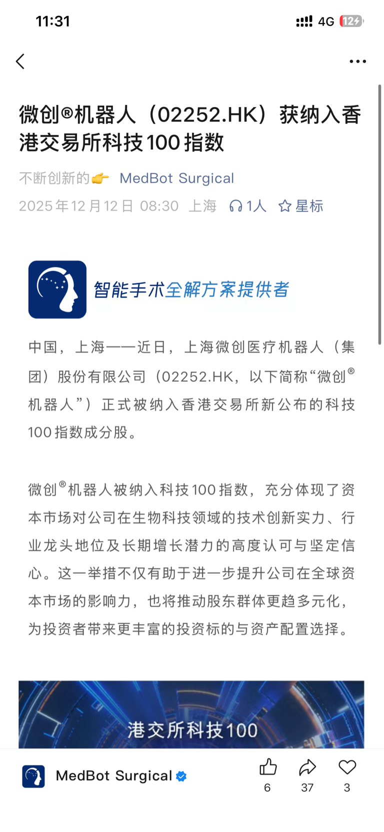 $微创机器人-B(HK|02252)$ 这算不算利好