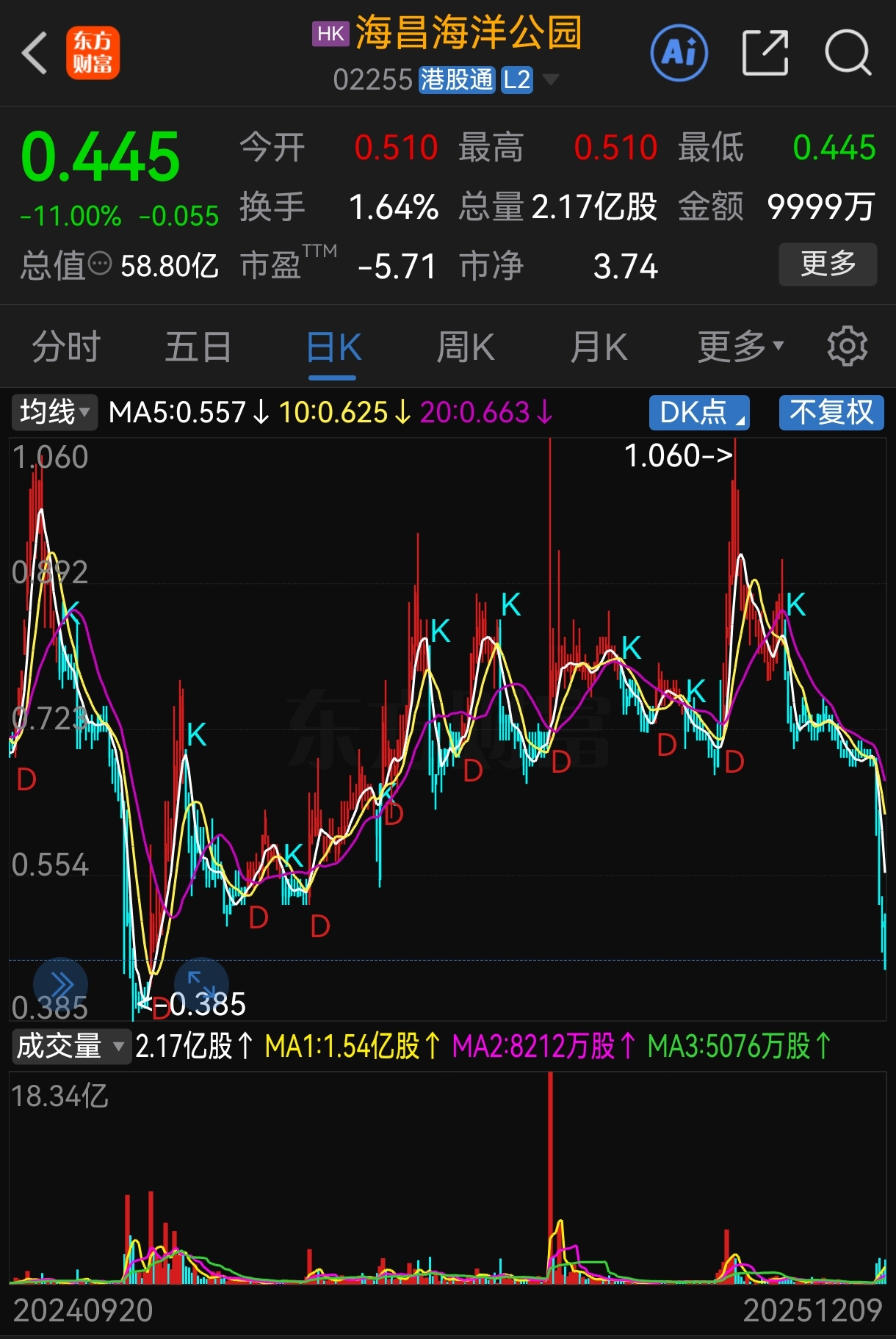 $海昌海洋公园(HK|02255)$ 有机会破0.4元么?【股市有风险,入市需谨慎】