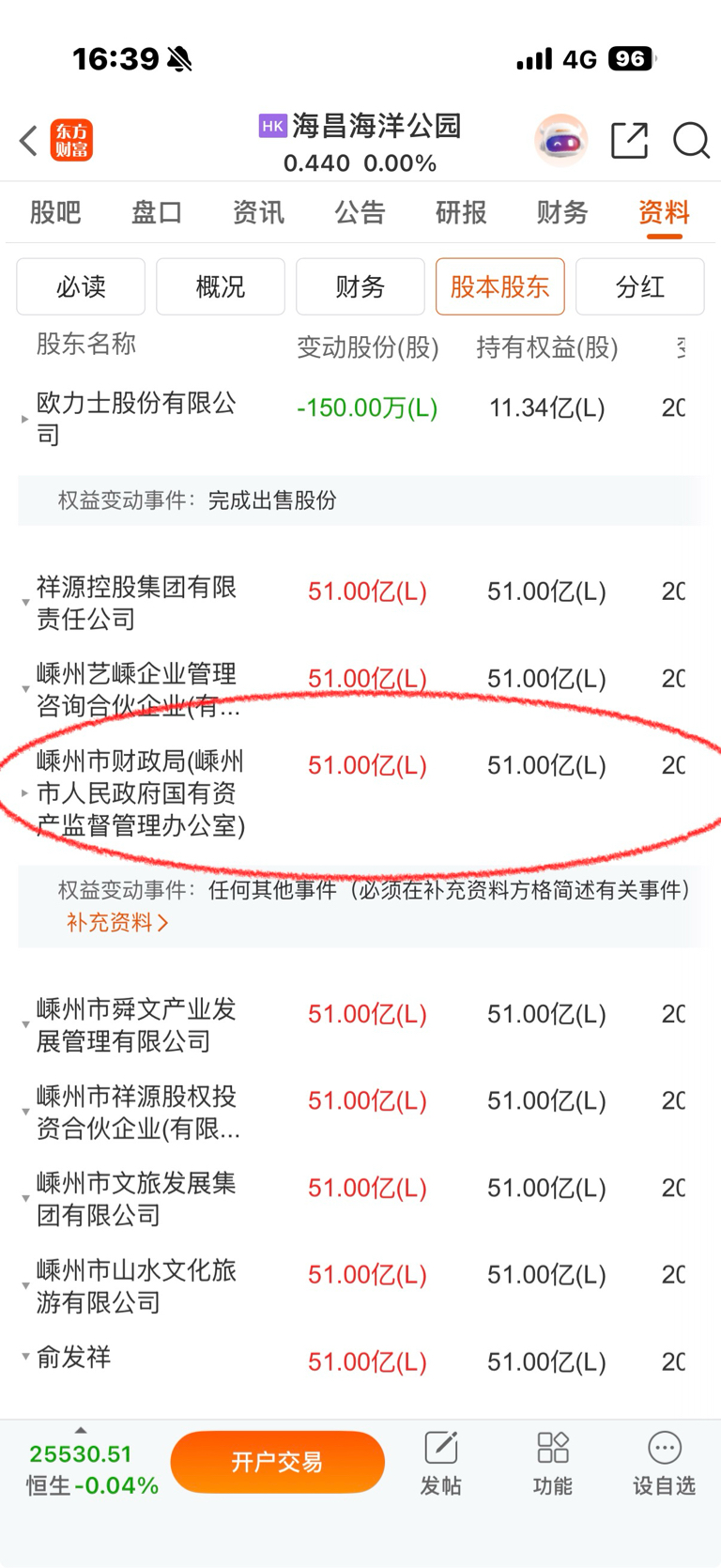 $海昌海洋公园(HK|02255)$ 东财这股东显示也太随意了啊,新增的明明就是恒源集团,结果显示嵊州市财政局,这不是误导人啊,整得像国资一样,完全不审核吗?